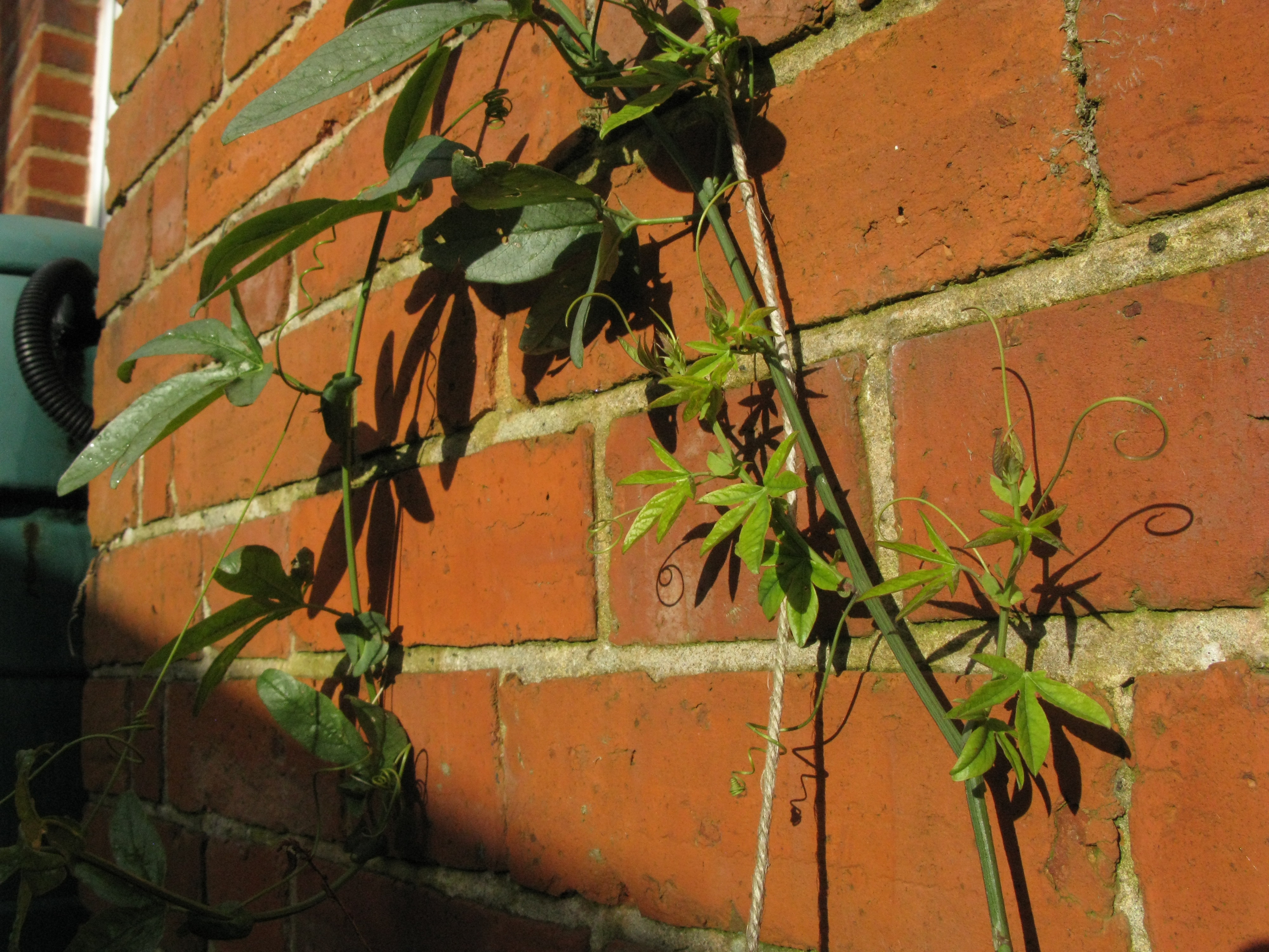 Passionsblomman på husets södervägg börjar få nya blad.
