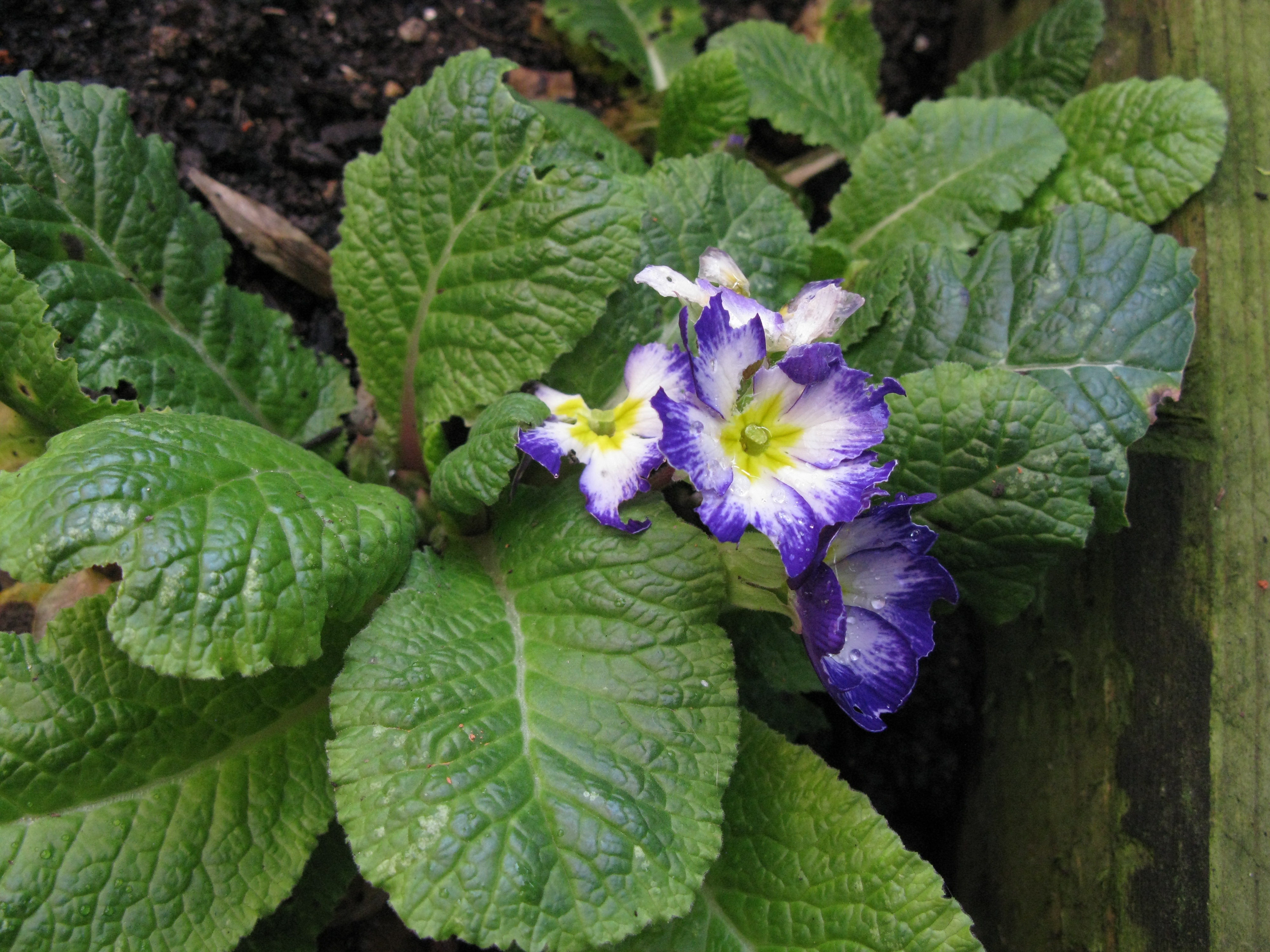 Primulan med flest blommor har redan hunnit få besök av nån hungrig snigel. Men den får vara med på bild ändå för jag tyckte den hade fina färger.