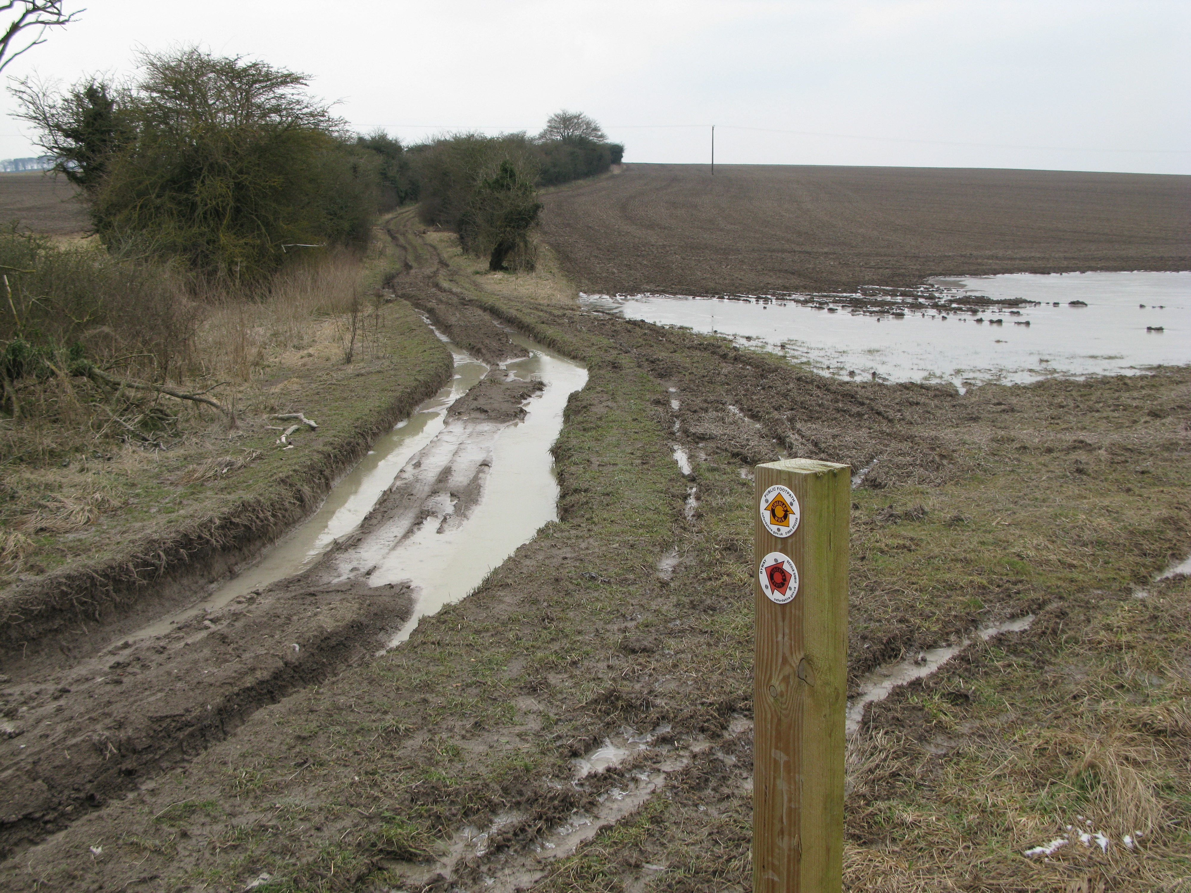 Lite upprörd blev jag igen nu när jag skriver detta. Det händer inte så ofta. Så för att lugna ner mig tänkte jag berätta lite från dagens promenad. Idag lyckades jag nämligen hitta gångstigen jag letade efter för någon vecka sedan. Då när jag fick gå bilvägen hem. Knepet stavas karta. Vad kartan däremot inte säger något om är hur leriga vägarna är. Den engelska leran jag gick i idag vinner i kategorin Förmåga till vidhäftning. För varje steg jag tog växte lerlagret under skorna och det som klämdes upp på sidan av skorna kröp närmre och närmre skosnörena. När jag försökte torka av mig i gräset fastnade det också, så till slut såg det ut som att jag trampat i två fågelbon. Tur inga militanta djurvänner såg mig…