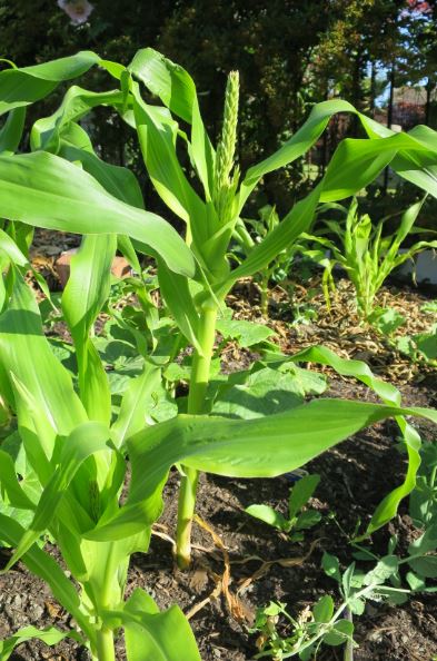 Grönsakerna i landet växer inte alls lika snabbt som brännässlorna på andra sidan bäcken, men så har väl nässlorna haft längre tid på sig att etablera sig. Ska jag vara ärlig så såg grönsakerna faktiskt ganska eländiga ut, trots att de fått lite gödning vid planteringen. Kanske var det lite som var problemet. De fick lite mer och det gjorde att de flesta såg lite friskare ut. Men löken och en av pumpasorterna såg fortfarande inte ut att trivas. Jag köpte ett par böcker om jord och klurade ut att det var alldeles för kalkrikt för att de skulle kunna suga upp de näringsämnen de behövde från jorden. Efter att ha pudrat både bladen och jorden med gult svavel för att sura ner jorden så piggnade de faktiskt till. Fast det luktade inget vidare.