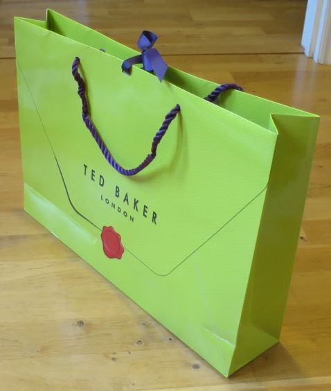 På rea-galjarna i en annan butik hittade jag en klänning jag gillade för 69 pund. En snygg påse fick man med också. I nästa butik köpte jag ett par skor och en plånbok.