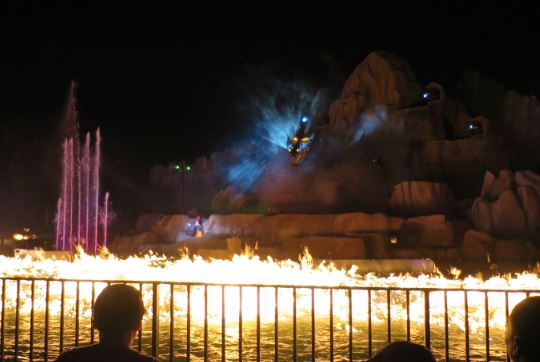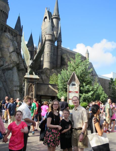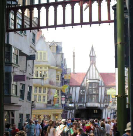 Vi började i ena parken med Mumier och sen Harry Potter. Sen tog vi Harry-Potter-tåget från Kings Cross vid Diagon Ally till andra parken och den snöiga byn Hogsmeade. Där blev det den andra Harry-Potter-turen följt av en blöt tur.